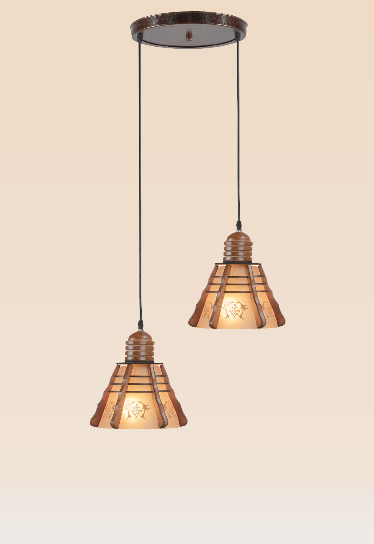 The dual suspension is anchored to a wide, round metal canopy that ensures even distribution of light and visual balance over long surfaces. Whether it’s highlighting a rustic kitchen island, gracing a farmhouse dining table, or adding charm to a cozy café corner, this fixture blends functionality with soul.