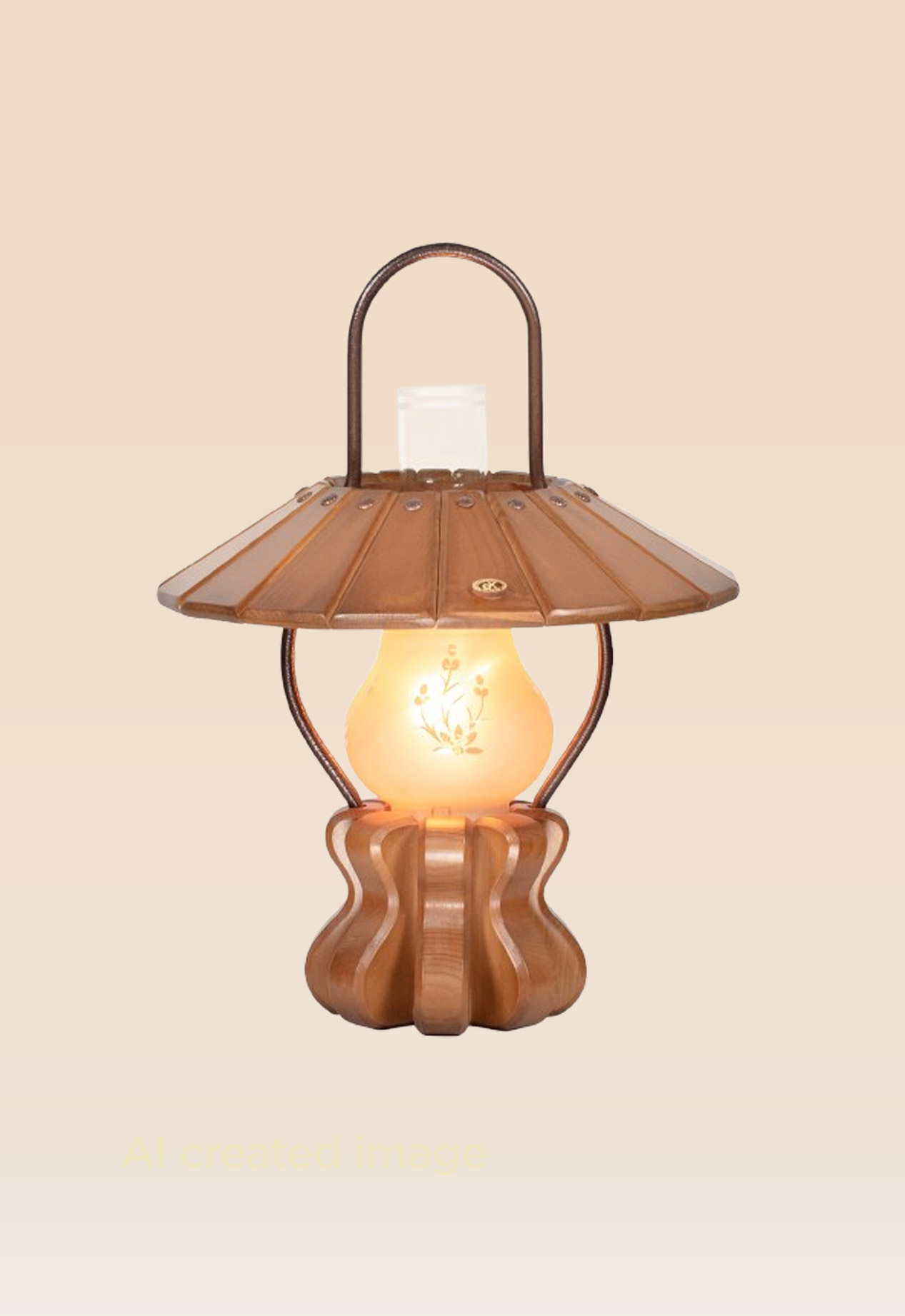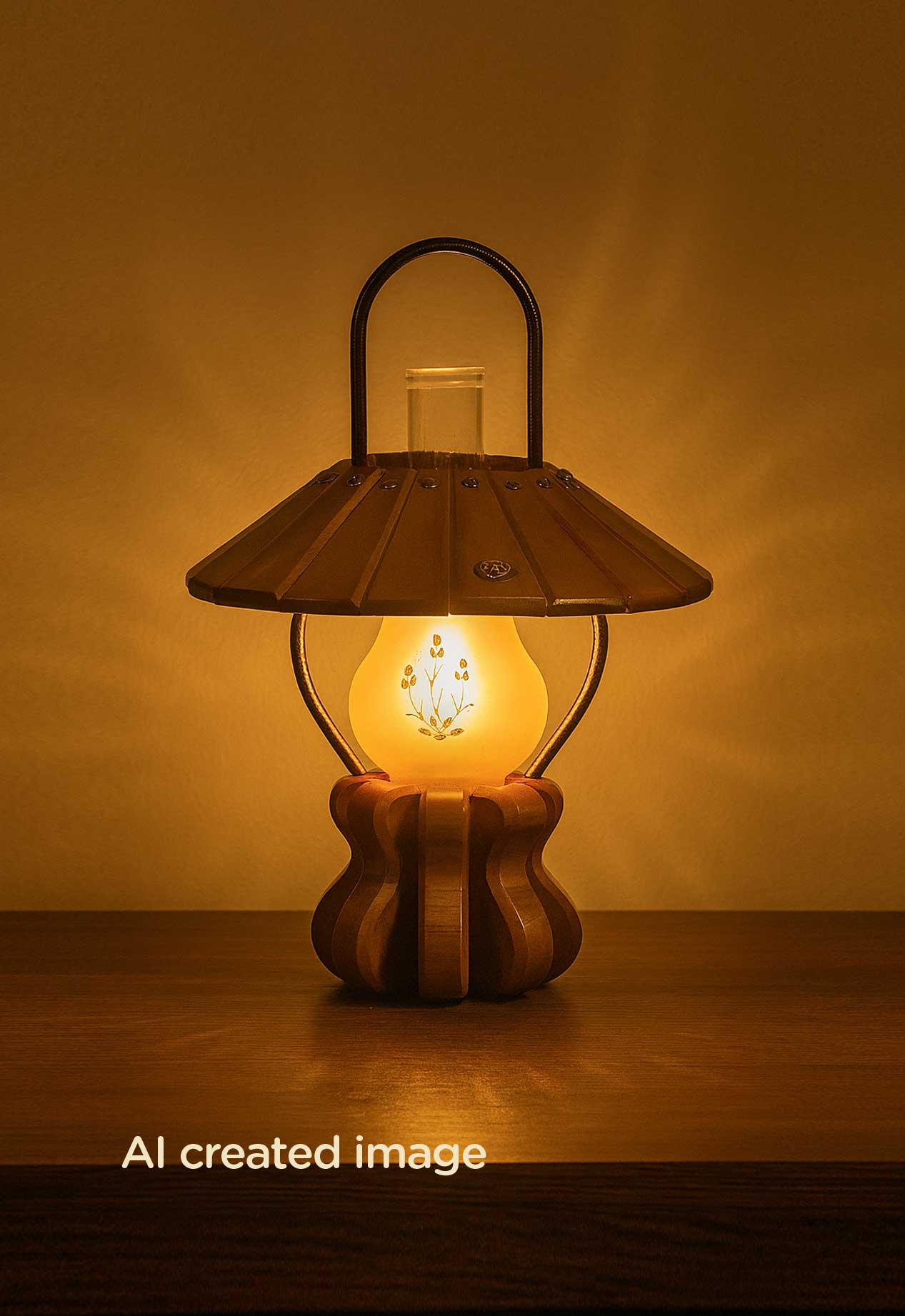 Model 548 – A handcrafted wooden lantern-style table lamp with floral-etched glass and a vintage farmhouse charm. Made by DARKAR.