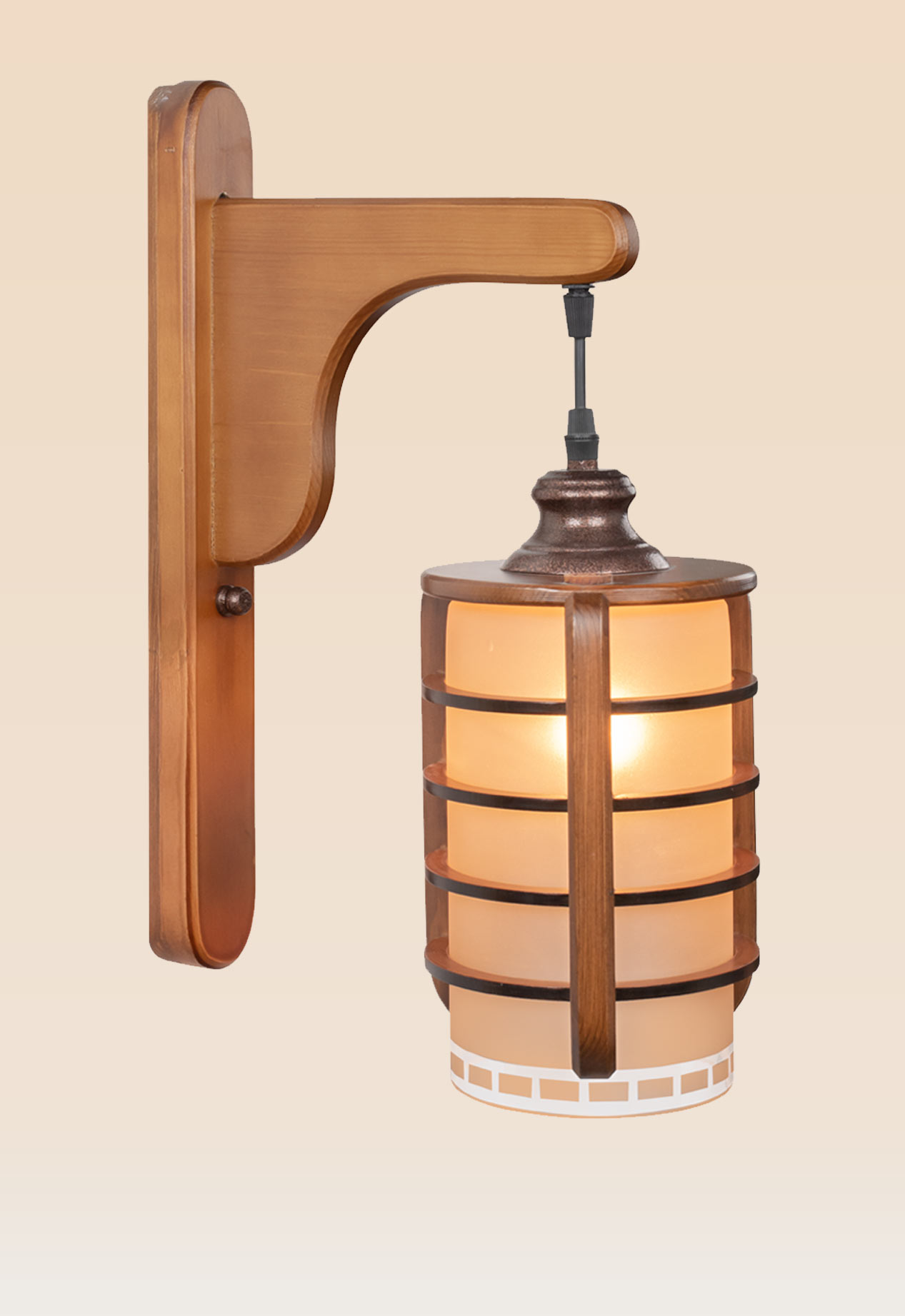 Model 428 Wooden Wall Sconce Light– Cage Design with Amber Glass Shade