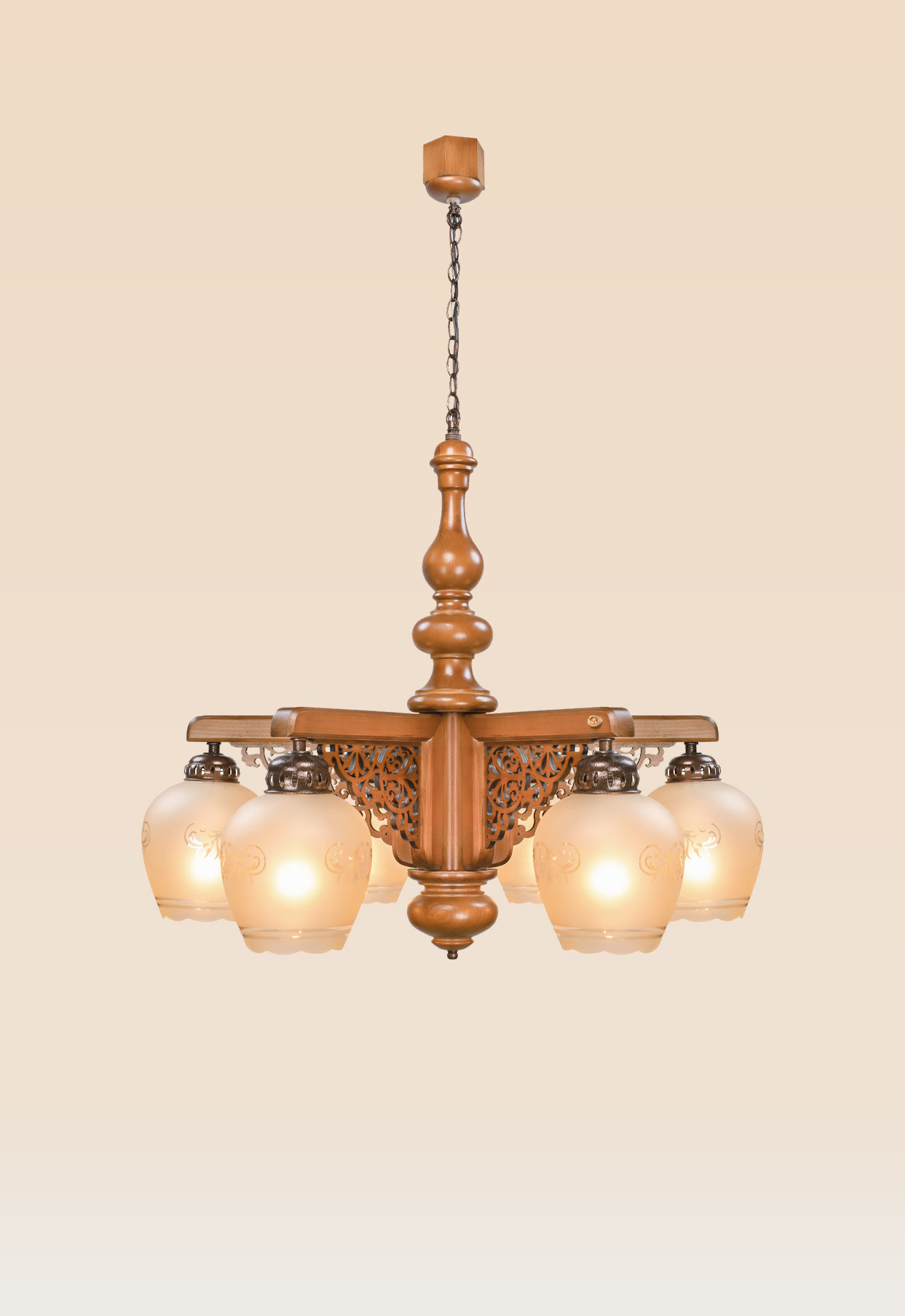 Suspended by a sturdy chain and crowned with a hexagonal wooden ceiling cup, the 242-6 offers both visual beauty and long-lasting durability. Its combination of ornamental woodwork, warm amber-toned illumination, and timeless design makes it an ideal choice for traditional dining rooms, large living areas, entry halls, or majlis settings.